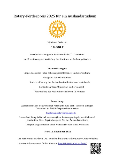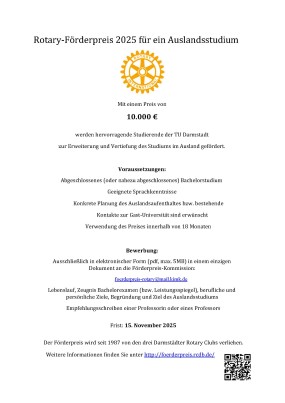 With a prize of €10,000, outstanding students of TU Darmstadt are supported to expand and deepen their studies abroad.